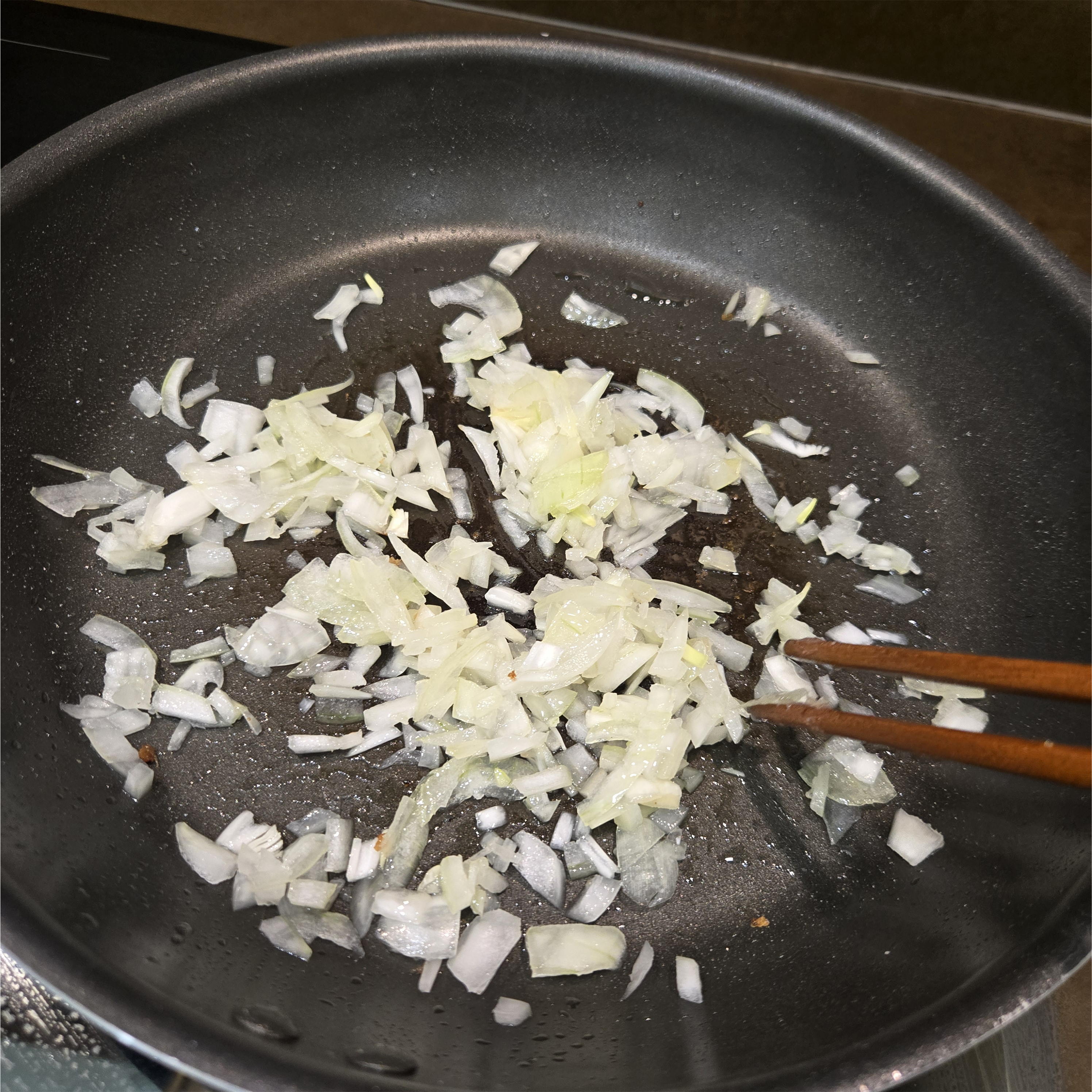 그리고 팬을 닦고 다시 식용유를 두르고 양파를 볶고